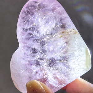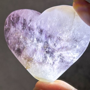 透明感のあるザクザクのアメジストアゲートにカルサイトが共生したハートです。