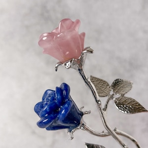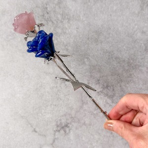 可愛らしいピンクのローズクォーツと鮮やかなブルーのソーダライトの美しいバラです。