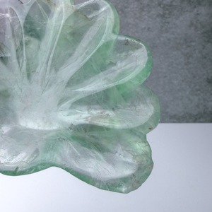 淡いグリーンをベースに、ところどころにパープルが溶け合うフローライト。