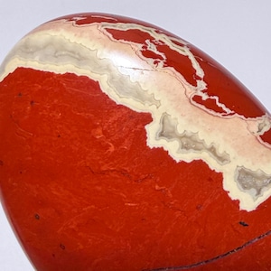深みのあるレッドの中に、やわらかなベージュの流れが重なる印象的なレッドジャスパー。