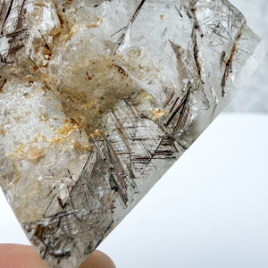 片面はルチルの流れ、もう片面はクリアな透明感と印象的な模様が魅力です。