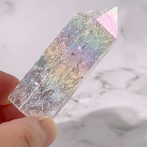 クラック水晶にエンジェルオーラ加工をしたミニタワーです。