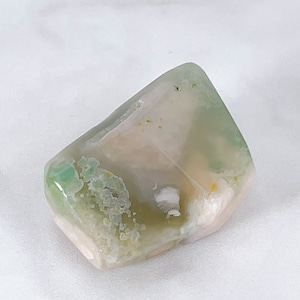 濃いめと淡い2種類のエメラルドグリーンに透明感のあるクォーツとホワイトのフラワーが綺麗です。小さめサイズですが、グリーンフラワーアゲートの魅力が詰まったアイテムです。