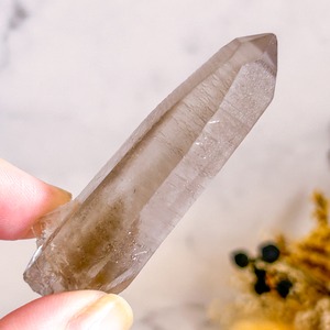 スモーキーで透明なクリスタルの中に、ガーデンクォーツのように内包物が浮かんでいて神秘的です。