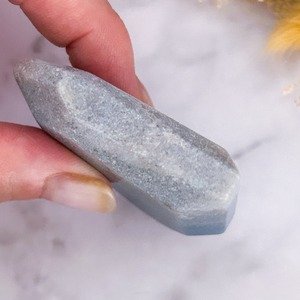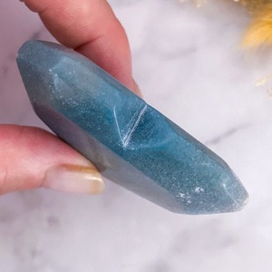 ブルー、グレー、ホワイトの色合いが素敵なハート型のトロレアイトインクォーツです。