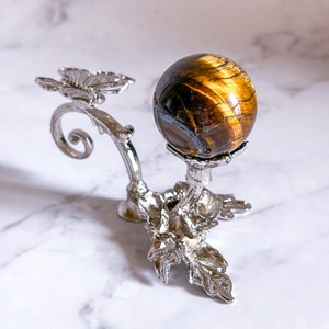お花がスフィアを包み込み、蝶々がお花に乗ったスフィアを眺める。