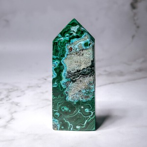 鮮やかなグリーンとブルーが美しい、マラカイトクリソコラのタワーです。