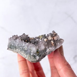 その雰囲気に合う、上品なトーンのパイライトが共生した原石です。